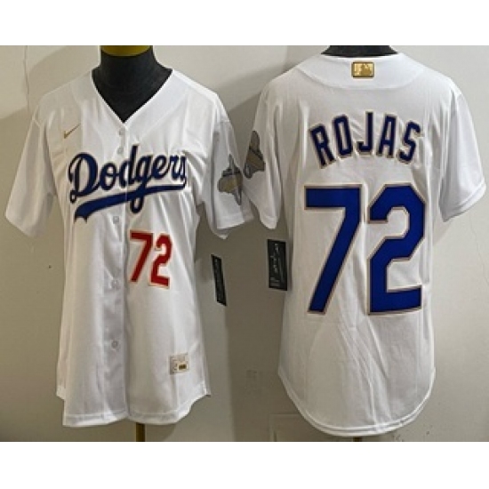 >Women's Los Angeles Dodgers #72 Miguel Rojas White 2026 Gold Collection Stadium Jersey