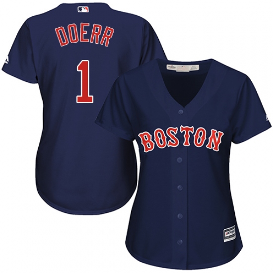 Home>MLB>Boston Red Sox>Bobby Doerr>Women's Majestic Boston Red Sox #1 Bobby Doerr Authentic Navy Blue Alternate Road MLB Jersey