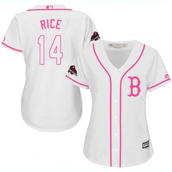 Women's Majestic Boston Red Sox #14 Jim Rice Authentic Pink Fashion 2018 World Series Champions MLB Jersey