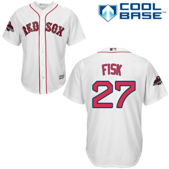 >Women's Majestic Boston Red Sox #27 Carlton Fisk Authentic White Fashion 2018 World Series Champions MLB Jersey