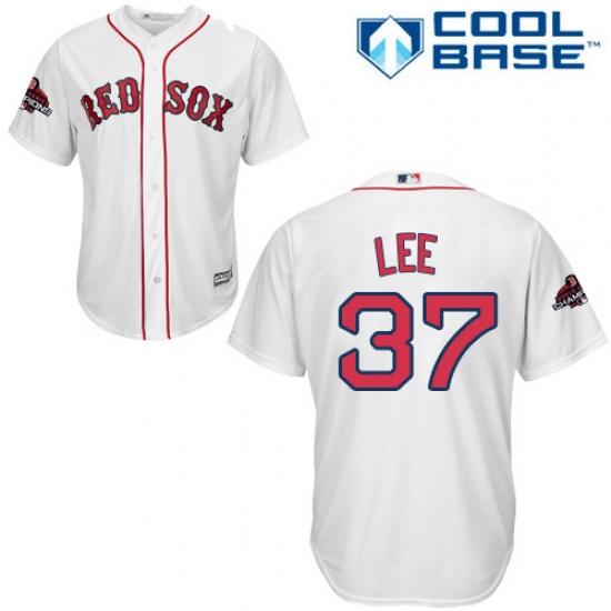 >Women's Majestic Boston Red Sox #37 Bill Lee Authentic White Home 2018 World Series Champions MLB Jersey