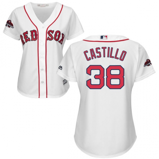 >Women's Majestic Boston Red Sox #38 Rusney Castillo Authentic White Home 2018 World Series Champions MLB Jersey