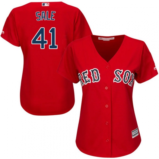 Women's Majestic Boston Red Sox #41 Chris Sale Authentic Red Alternate Home MLB Jersey