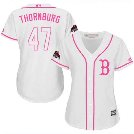 Women's Majestic Boston Red Sox #47 Tyler Thornburg Authentic White Fashion 2018 World Series Champions MLB Jersey