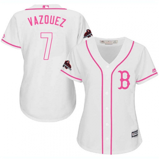 Women's Majestic Boston Red Sox #7 Christian Vazquez Authentic White Fashion 2018 World Series Champions MLB Jersey