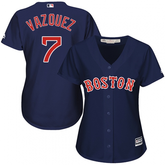 Women's Majestic Boston Red Sox #7 Christian Vazquez Replica Navy Blue Alternate Road MLB Jersey