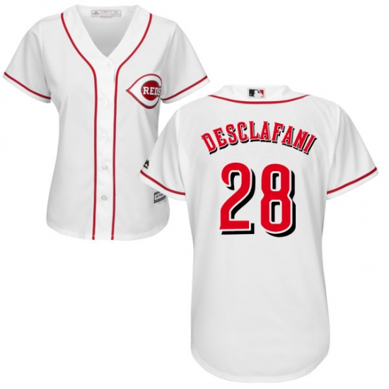 Home>MLB>Cincinnati Reds>Anthony DeSclafani>Women's Majestic Cincinnati Reds #28 Anthony DeSclafani Authentic White Home Cool Base MLB Jersey