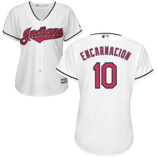 Home>MLB>Cleveland Indians>Edwin Encarnacion>Women's Majestic Cleveland Indians #10 Edwin Encarnacion Authentic White Home Cool Base MLB Jersey
