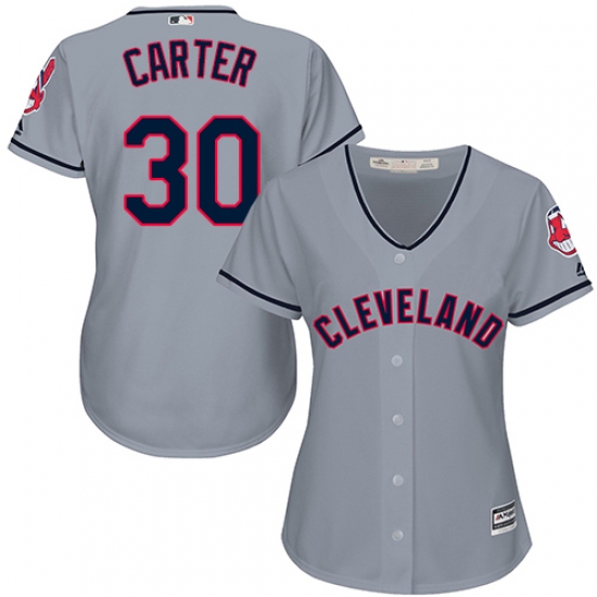 Women's Majestic Cleveland Indians #30 Joe Carter Authentic Grey Road Cool Base MLB Jersey