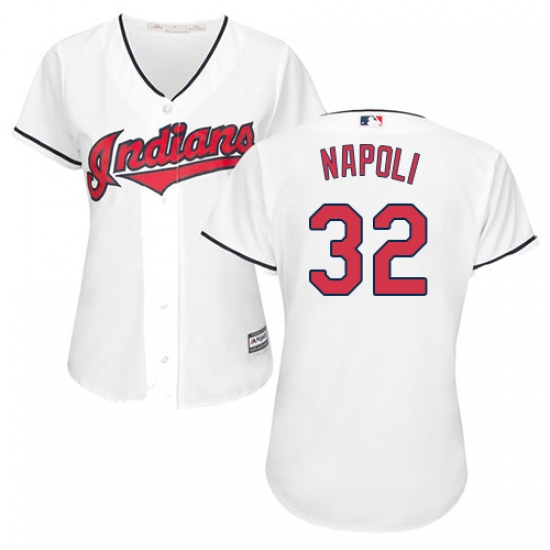 Home>MLB>Cleveland Indians>Mike Napoli>Women's Majestic Cleveland Indians #32 Mike Napoli Replica White Home Cool Base MLB Jersey