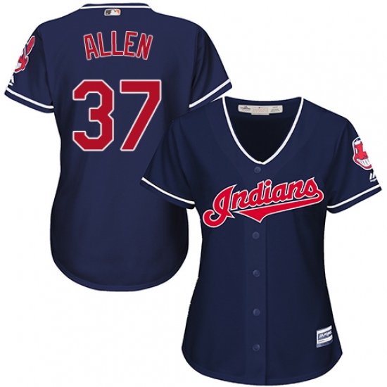 Women's Majestic Cleveland Indians #37 Cody Allen Authentic Navy Blue Alternate 1 Cool Base MLB Jersey