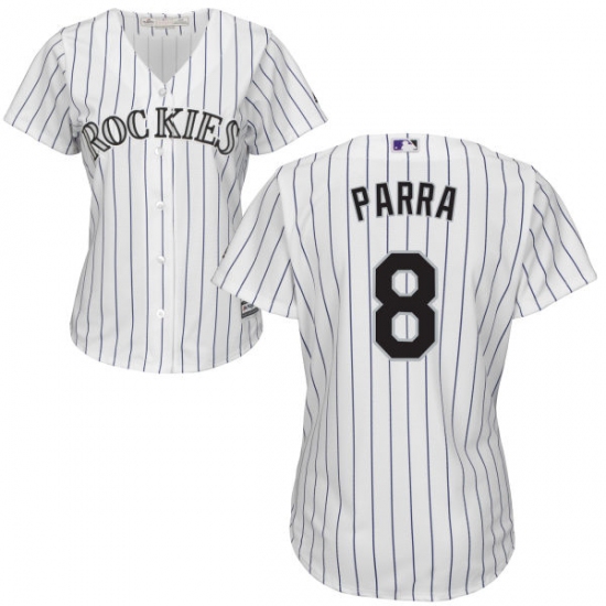 Home>MLB>Colorado Rockies>Gerardo Parra>Women's Majestic Colorado Rockies #8 Gerardo Parra Replica White Home Cool Base MLB Jersey