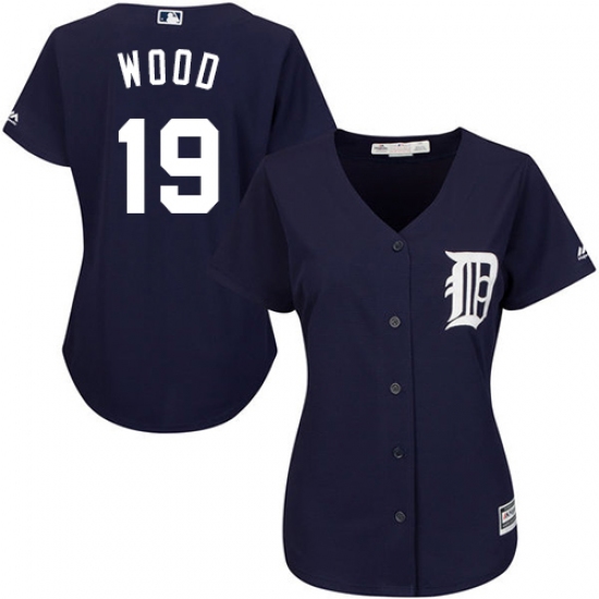Women's Majestic Detroit Tigers #19 Travis Wood Replica Navy Blue Alternate Cool Base MLB Jersey