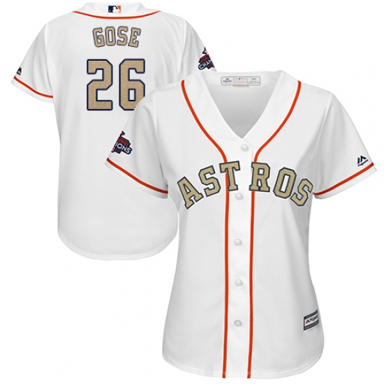 Home>MLB>Houston Astros>Anthony Gose>Women's Majestic Houston Astros #26 Anthony Gose Authentic White 2018 Gold Program Cool Base MLB Jersey
