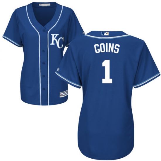 Home>MLB>Kansas City Royals>Ryan Goins>Women's Majestic Kansas City Royals #1 Ryan Goins Replica Blue Alternate 2 Cool Base MLB Jersey