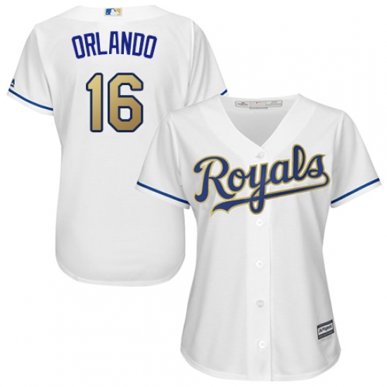 Home>MLB>Kansas City Royals>Paulo Orlando>Women's Majestic Kansas City Royals #16 Paulo Orlando Authentic White Home Cool Base MLB Jersey