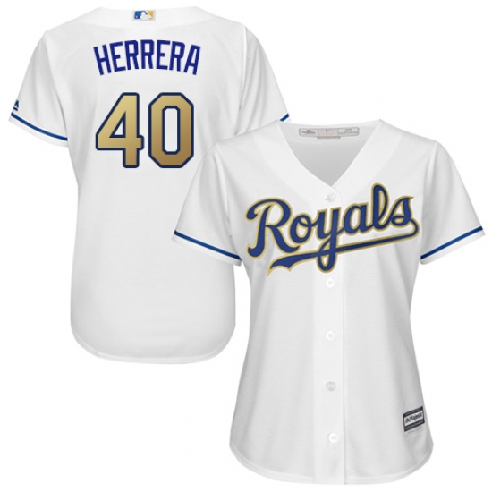 Home>MLB>Kansas City Royals>Kelvin Herrera>Women's Majestic Kansas City Royals #40 Kelvin Herrera Authentic White Home Cool Base MLB Jersey