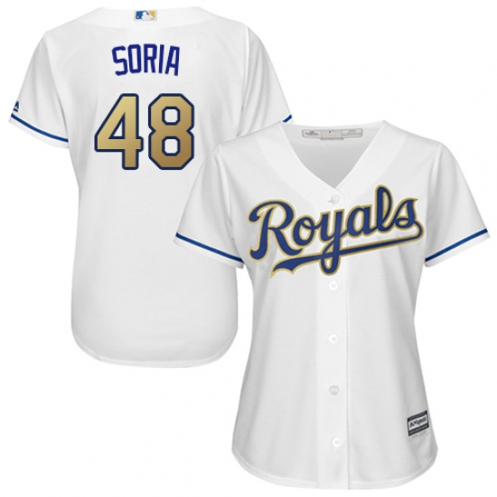 Home>MLB>Kansas City Royals>Joakim Soria>Women's Majestic Kansas City Royals #48 Joakim Soria Authentic White Home Cool Base MLB Jersey