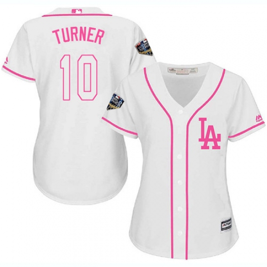 Women's Majestic Los Angeles Dodgers #10 Justin Turner Authentic White Fashion Cool Base 2018 World Series MLB Jersey