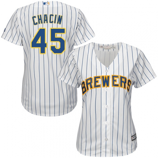Home>MLB>Milwaukee Brewers>Jhoulys Chacin>Women's Majestic Milwaukee Brewers #45 Jhoulys Chacin Authentic White Alternate Cool Base MLB Jersey