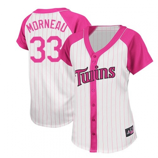 Women's Majestic Minnesota Twins #33 Justin Morneau Replica White/Pink Splash Fashion MLB Jersey