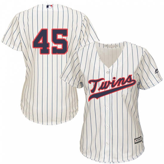 Women's Majestic Minnesota Twins #45 Phil Hughes Replica Cream Alternate Cool Base MLB Jersey