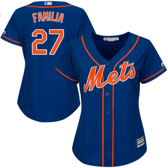 Home>MLB>New York Mets>Jeurys Familia>Women's Majestic New York Mets #27 Jeurys Familia Authentic Royal Blue Alternate Home Cool Base MLB Jersey