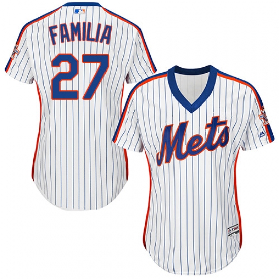 Home>MLB>New York Mets>Jeurys Familia>Women's Majestic New York Mets #27 Jeurys Familia Authentic White Alternate Cool Base MLB Jersey