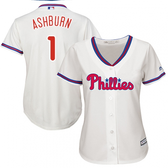 Home>MLB>Philadelphia Phillies>Richie Ashburn>Women's Majestic Philadelphia Phillies #1 Richie Ashburn Authentic Cream Alternate Cool Base MLB Jersey