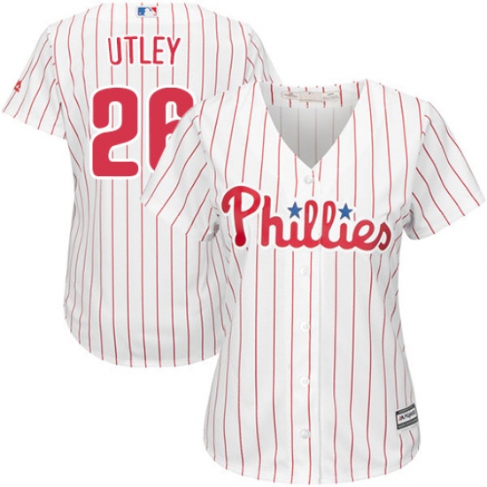 Home>MLB>Philadelphia Phillies>Chase Utley>Women's Majestic Philadelphia Phillies #26 Chase Utley Authentic White/Red Strip Home Cool Base MLB Jersey