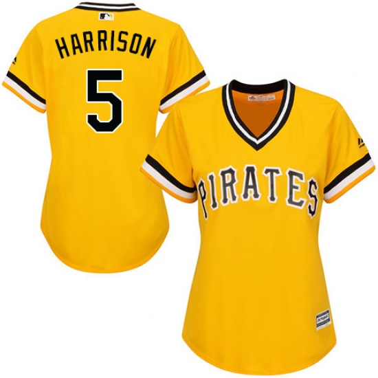 Women's Majestic Pittsburgh Pirates #5 Josh Harrison Replica Gold Alternate Cool Base MLB Jersey