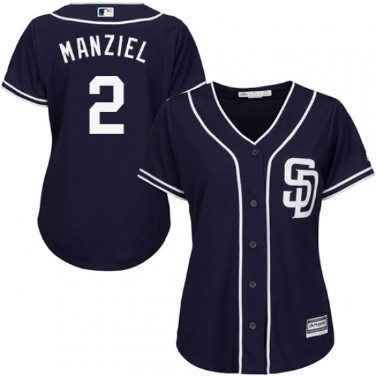 Home>MLB>San Diego Padres>Johnny Manziel>Women's Majestic San Diego Padres #2 Johnny Manziel Authentic Navy Blue Alternate 1 Cool Base MLB Jersey