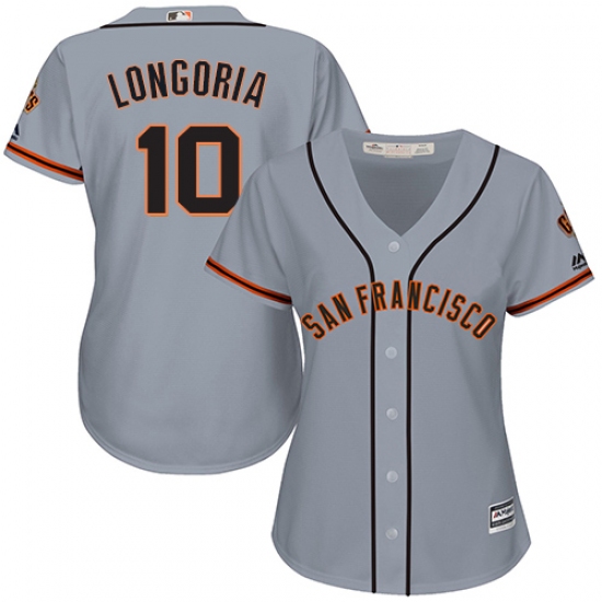 Women's Majestic San Francisco Giants #10 Evan Longoria Replica Grey Road Cool Base MLB Jersey