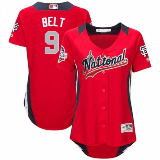 >Women's Majestic San Francisco Giants #9 Brandon Belt Game Red National League 2018 MLB All-Star MLB Jersey
