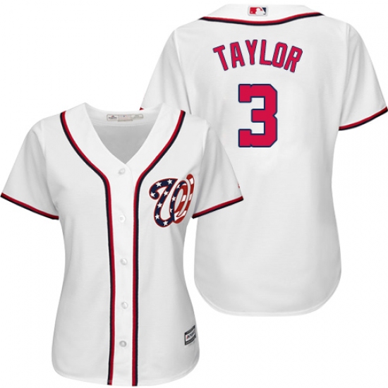 Women's Majestic Washington Nationals #3 Michael Taylor Replica White Home Cool Base MLB Jersey