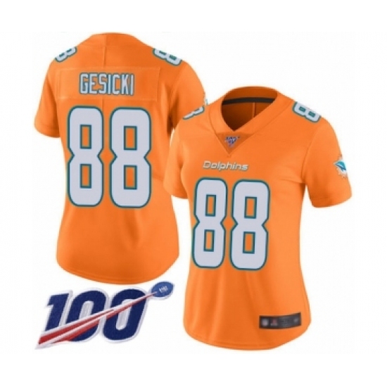Women's Miami Dolphins #88 Mike Gesicki Limited Orange Rush Vapor Untouchable 100th Season Football Jersey