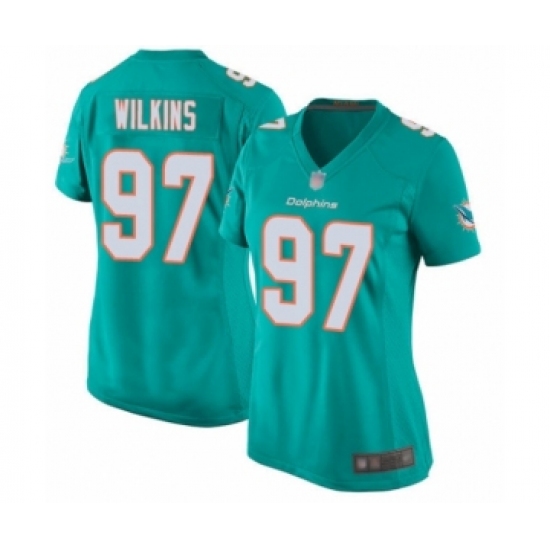 >Women's Miami Dolphins #97 Christian Wilkins Game Aqua Green Team Color Football Jersey