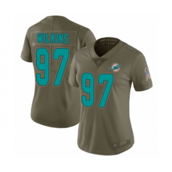 >Women's Miami Dolphins #97 Christian Wilkins Limited Olive 2017 Salute to Service Football Jersey