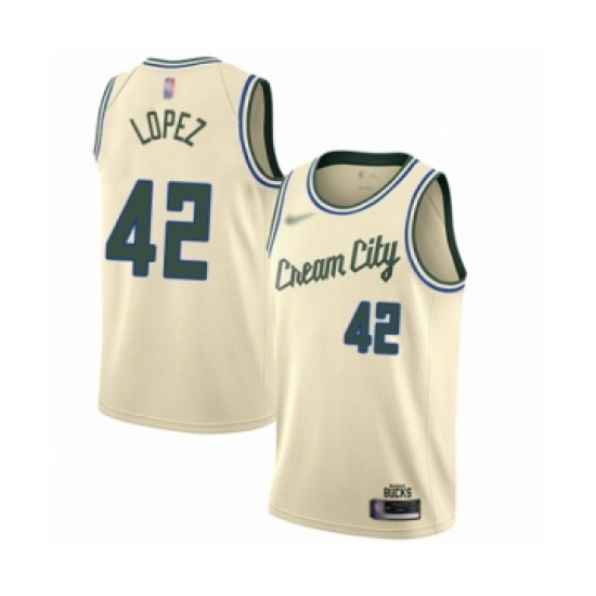 Men's Milwaukee Bucks #42 Robin Lopez Authentic Cream Basketball Jersey - City Edition