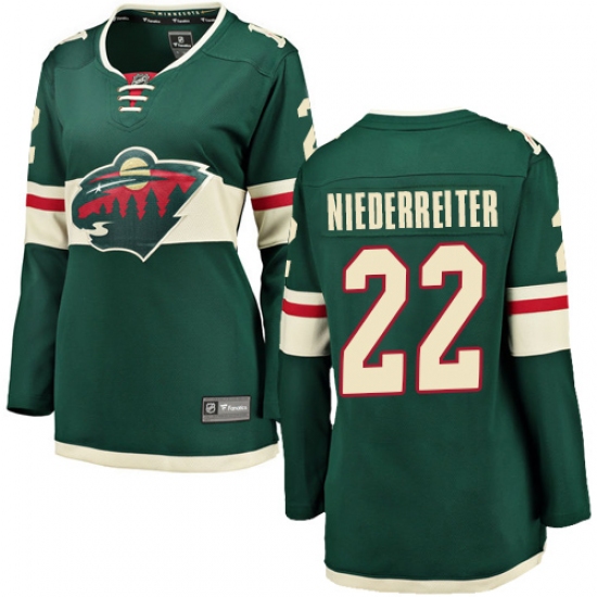 Home>NHL>Minnesota Wild>Nino Niederreiter>Women's Minnesota Wild #22 Nino Niederreiter Authentic Green Home Fanatics Branded Breakaway NHL Jersey