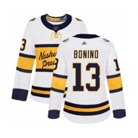 >Women's Nashville Predators #13 Nick Bonino Authentic White 2020 Winter Classic Hockey Jersey