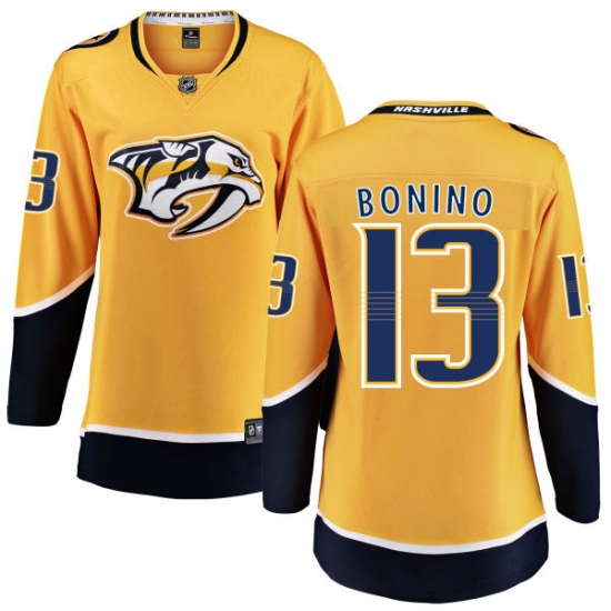 Home>NHL>Nashville Predators>Nick Bonino>Women's Nashville Predators #13 Nick Bonino Fanatics Branded Gold Home Breakaway NHL Jersey