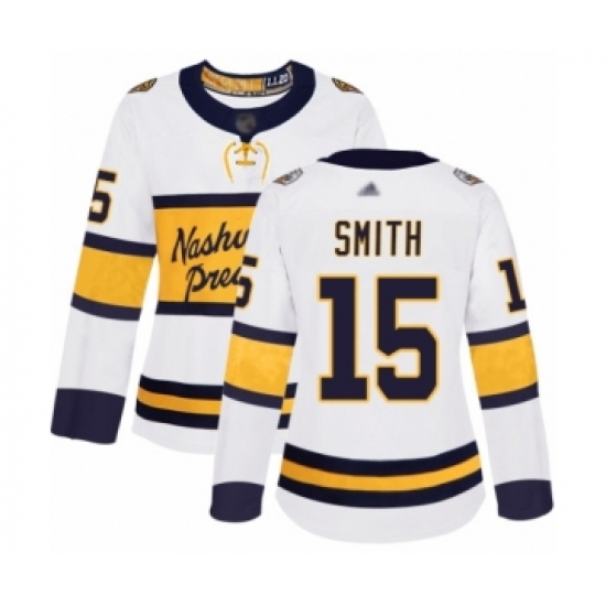 >Women's Nashville Predators #15 Craig Smith Authentic White 2020 Winter Classic Hockey Jersey