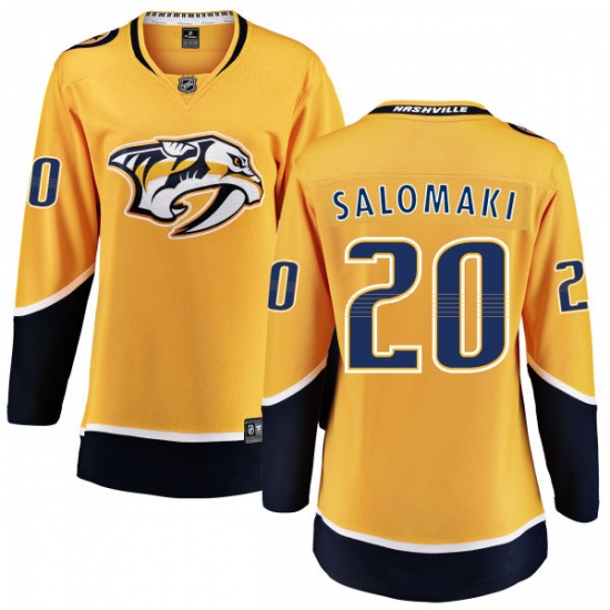 Home>NHL>Nashville Predators>Miikka Salomaki>Women's Nashville Predators #20 Miikka Salomaki Fanatics Branded Gold Home Breakaway NHL Jersey