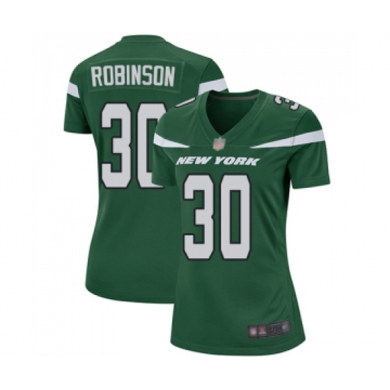 Women's New York Jets #30 Rashard Robinson Game Green Team Color Football Jersey
