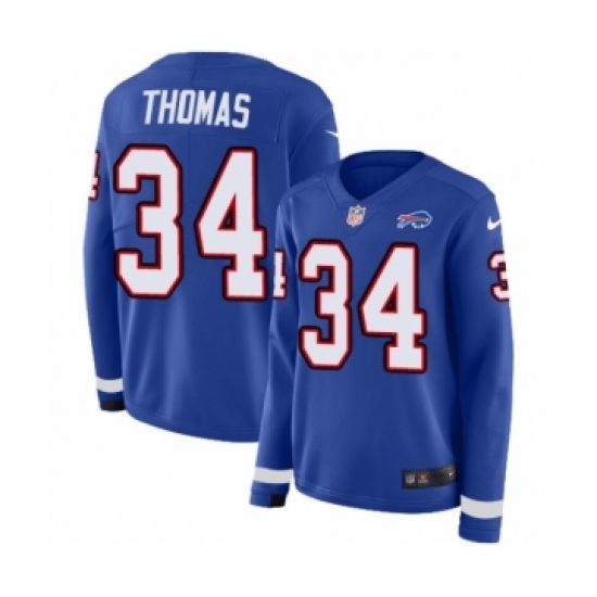 >Women's Nike Buffalo Bills #34 Thurman Thomas Limited Royal Blue Therma Long Sleeve NFL Jersey