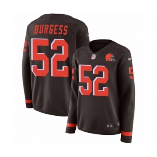 >Women's Nike Cleveland Browns #52 James Burgess Limited Brown Therma Long Sleeve NFL Jersey