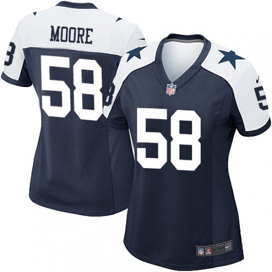 Home>NFL>Dallas Cowboys>Damontre Moore>Women's Nike Dallas Cowboys #58 Damontre Moore Game Navy Blue Throwback Alternate NFL Jersey