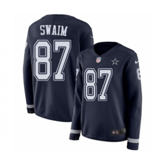 >Women's Nike Dallas Cowboys #87 Geoff Swaim Limited Navy Blue Therma Long Sleeve NFL Jersey