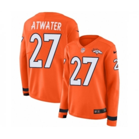 >Women's Nike Denver Broncos #27 Steve Atwater Limited Orange Therma Long Sleeve NFL Jersey